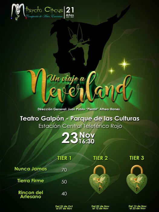 Una experiencia que combina teatro, danza, acrobacias y combates escénicos en un espectáculo que transporta directamente al mundo de los sueños, con dos historias en una sola función: Tinker Bell: la chispa de la magia y la amistad y Peter Pan: el niño que se negó a crecer.