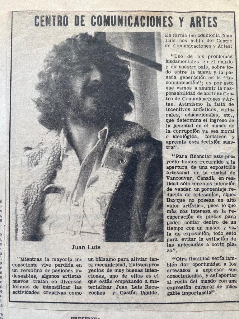 Recacochea, figura clave de la generación contracultural de los años 70 en La Paz, fue parte del grupo Luz Ácida y cofundador del Centro de Comunicaciones y Artes en 1972, junto a Gastón y Fernando Ugalde. Con ellos y otros artistas, realizaron en 1974 la exposición colectiva “Artistas de los años ácidos” en el Museo Nacional de Arte – MNA.