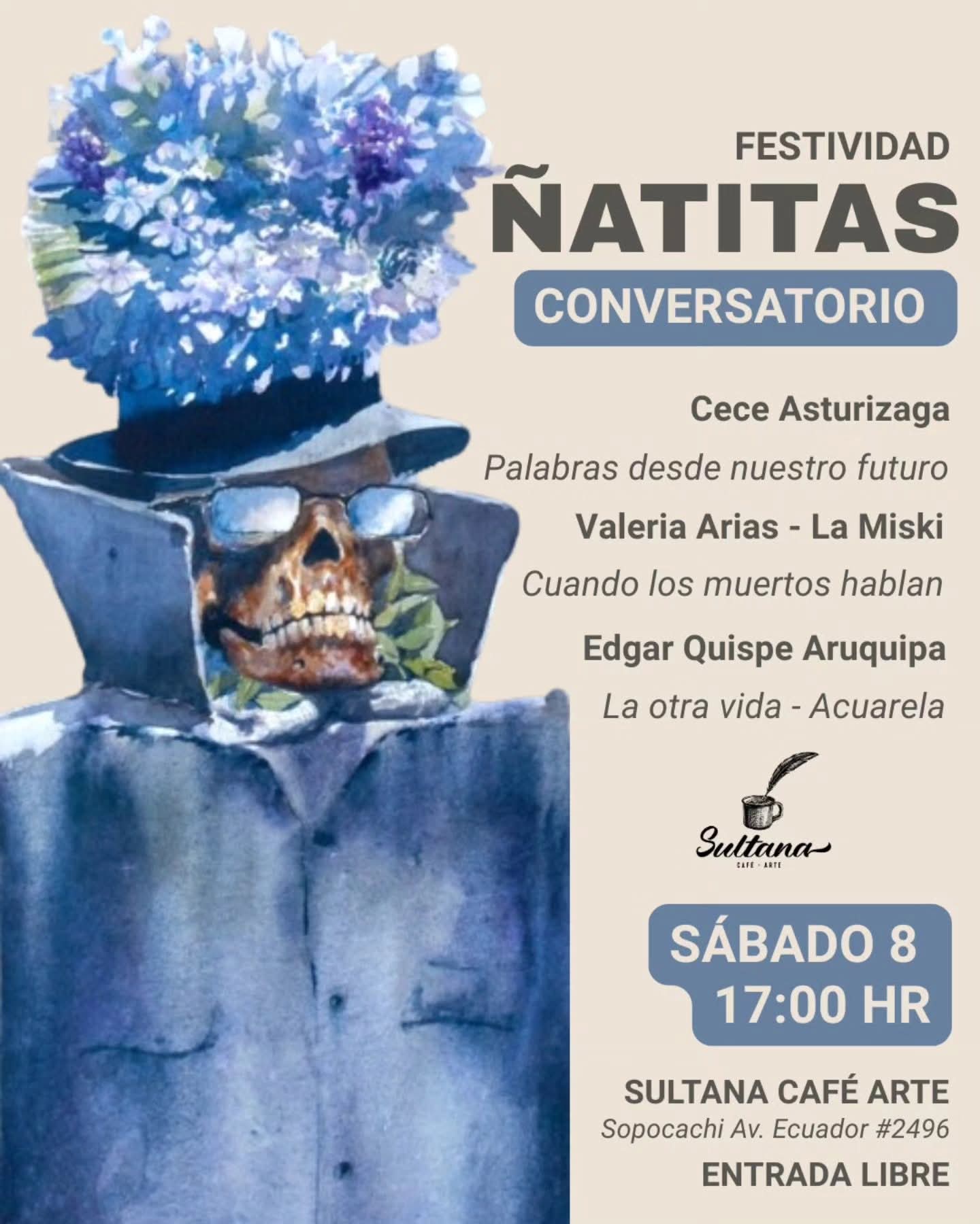 Un encuentro especial para honrar la festividad de las Ñatitas desde la memoria, el amor y la tradición viva. Conversatorio donde se explorará su historia, costumbres y significados afectivos, junto a invitados que comparten su mirada y experiencia.