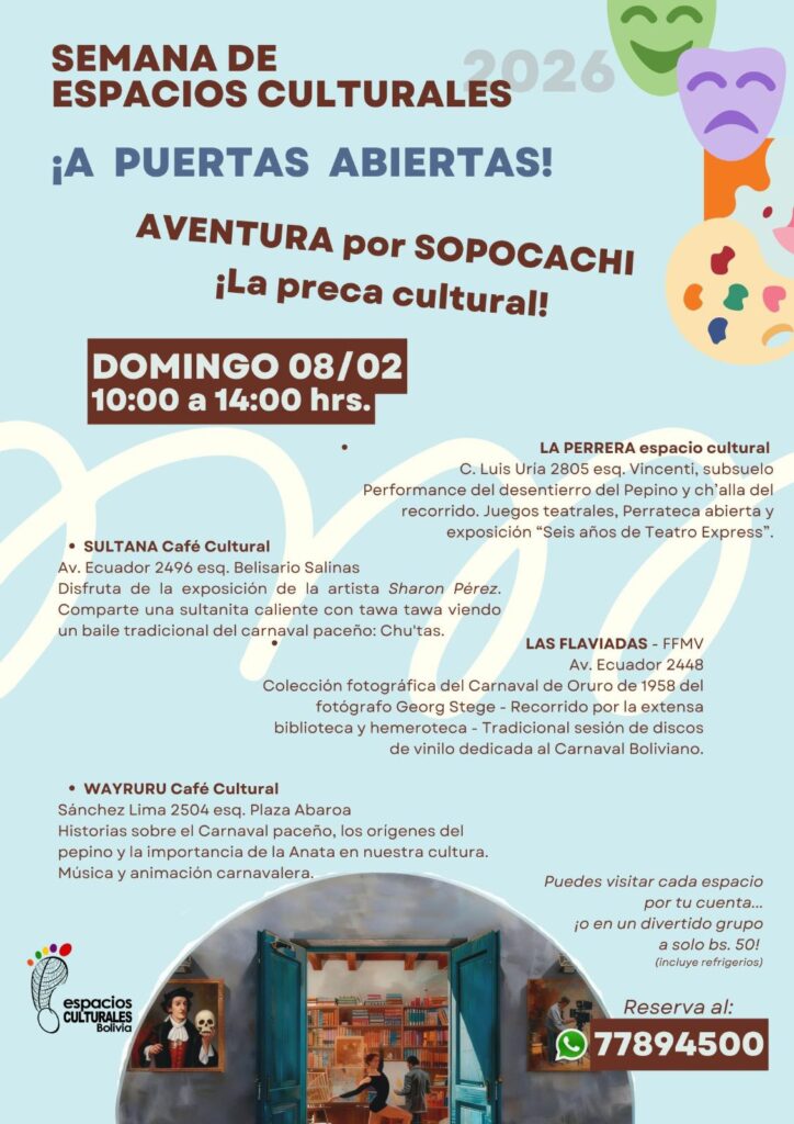 Doce espacios culturales de Sucre, Yotala, Cachimayu y Tarabuco ofrecen una frondosa programación a puertas abiertas entre el viernes 30 de enero y el sábado 7 de febrero.