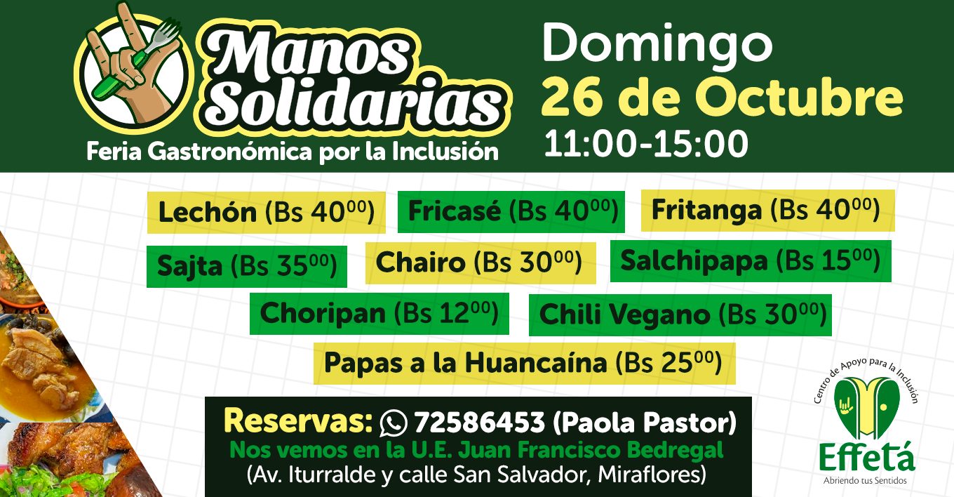 El Centro Effetá, referente en apoyo a la inclusión educativa de niños, niñas y jóvenes sordos, invita a la tradicional Feria Gastronómica por la Inclusión – Manos Solidarias, un encuentro que combina sabor, solidaridad y comunidad.