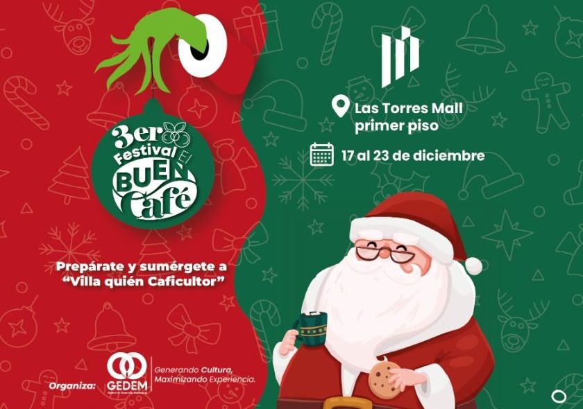 El festival El buen café presenta su tercera edición navideña, un espacio dedicado a reunir a familias, caficultores, baristas y emprendimientos locales en torno a la cultura del café. Durante siete días, el público podrá disfrutar de degustaciones, actividades formativas y propuestas que destacan la producción nacional en un ambiente festivo propio de la temporada.