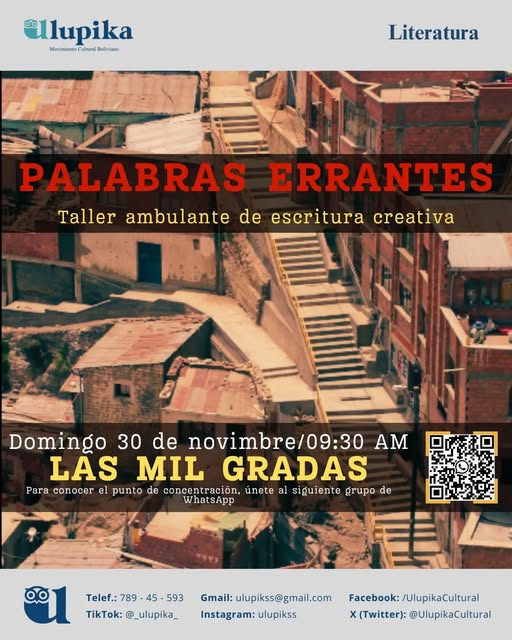 Este domingo 30 de noviembre a las 9:30 a.m., te invitamos a una experiencia distinta: escribir mientras ascendemos y recorremos las mil gradas, ese camino que une La Paz y El Alto y que guarda historias en cada peldaño.