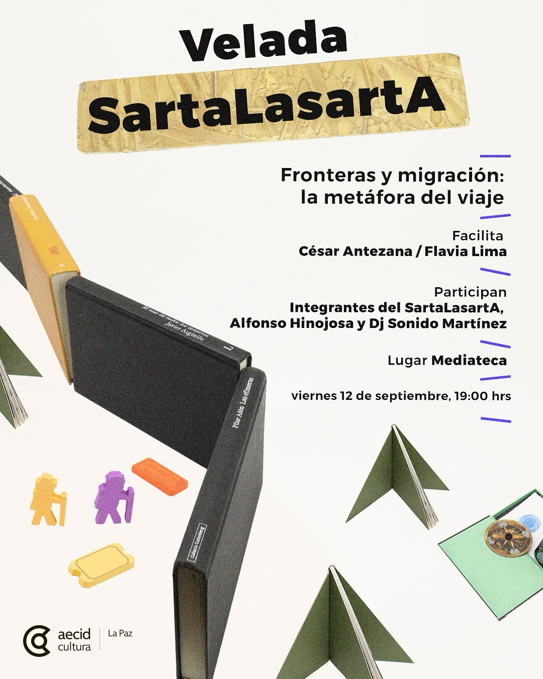 La Mediateca del CCELP cierra la cuarta edición de Sartalasarta, su programa bimensual de mediación, con una velada dedicada a reflexionar sobre las fronteras y la migración. Tras cuatro sesiones colectivas de lectura y creación, la actividad abre al público un espacio para compartir poesía, reseñas y una instalación colectiva. La jornada incluirá la presentación del cuarto fanzine Sartalasarta, una entrevista con el investigador Alfonso Hinojosa y una mini-sesión musical a cargo de DJ Sonido Martínez. Una noche que conecta literatura, memoria y experiencias de tránsito.
